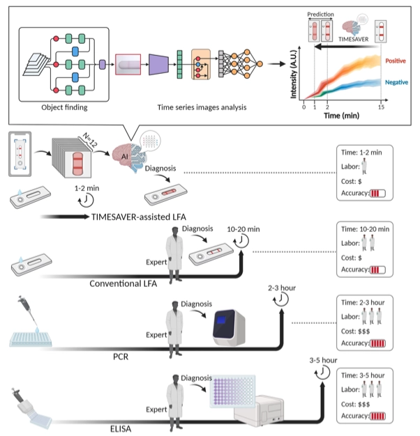 The research by Seungmin Lee, Jeong Soo Park, and Hyowon Woo, titled 'Rapid Deep Learning-Assisted Predictive Diagnostics for Point-of-Care Testing' Nature Communications (2024) 15:1695, has been published in Nature Communications. This is a groundbreaking technology that can complete diagnoses that typically take several hours in just 1-2 minutes through a completely novel time-series deep learning approach.