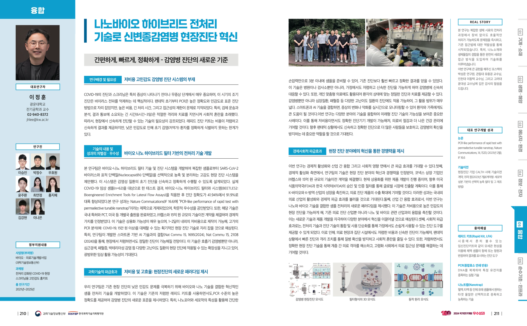 This selection is in the interdisciplinary field and under the Ministry of Science and ICT's (Social Problem Solving Achievement) category, 'Innovation in On-site Diagnosis of Emerging Infectious Diseases Using Nano-bio Hybrid Preprocessing Technology.'